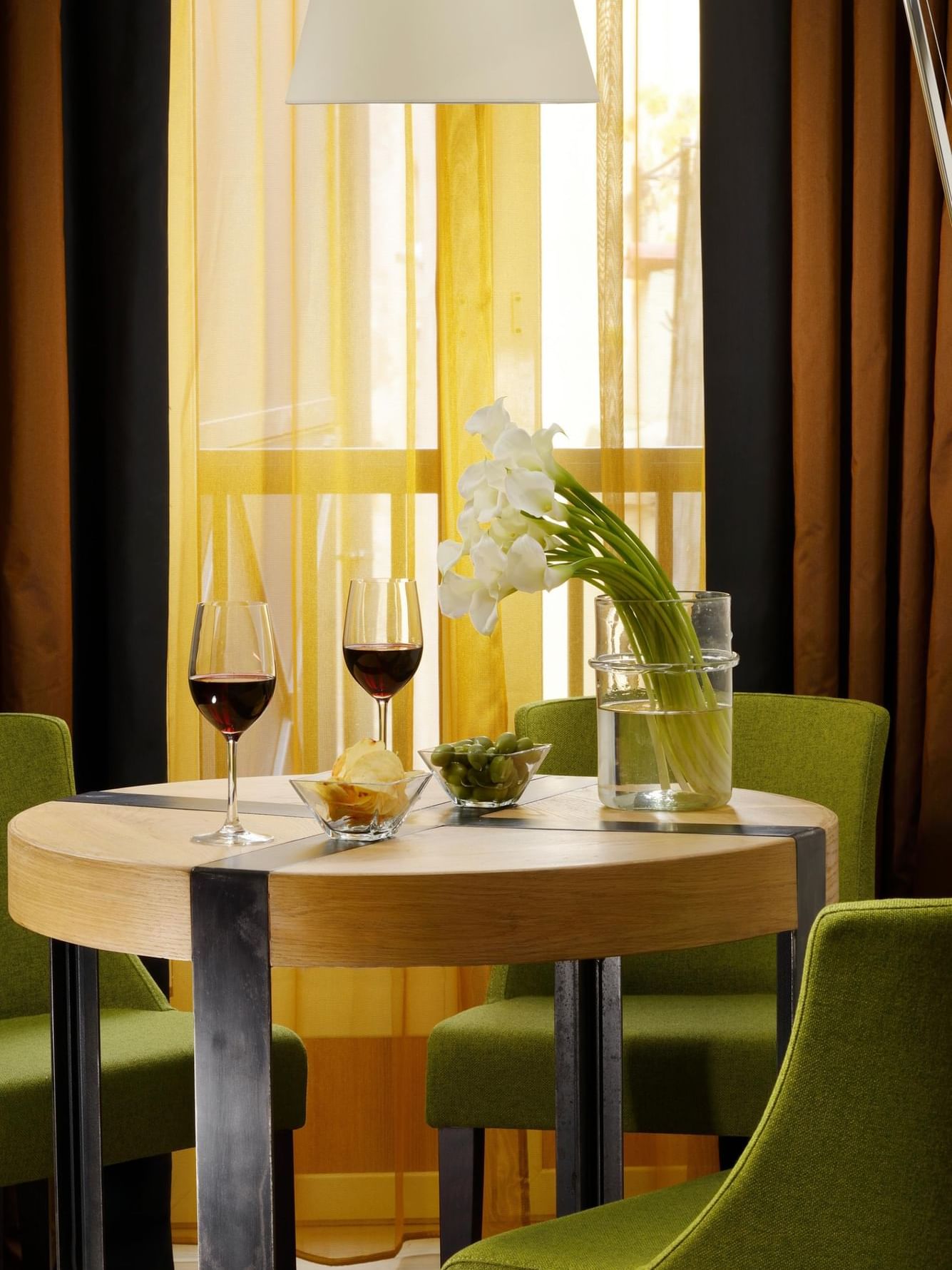 Quando hai bisogno di un po' più di spazio per rilassarti, non cercare oltre le nostre Suite Deluxe. Una vasta area living vanta eleganti poltrone e un tavolo da pranzo separato, mentre il letto king size è rifinito con biancheria di qualità e piumone. E se hai bisogno di un altro motivo, l'opulento bagno in marmo e mosaico offre una doccia separata e una vasca da bagno, oltre a comodi lavandini per lui e per lei.