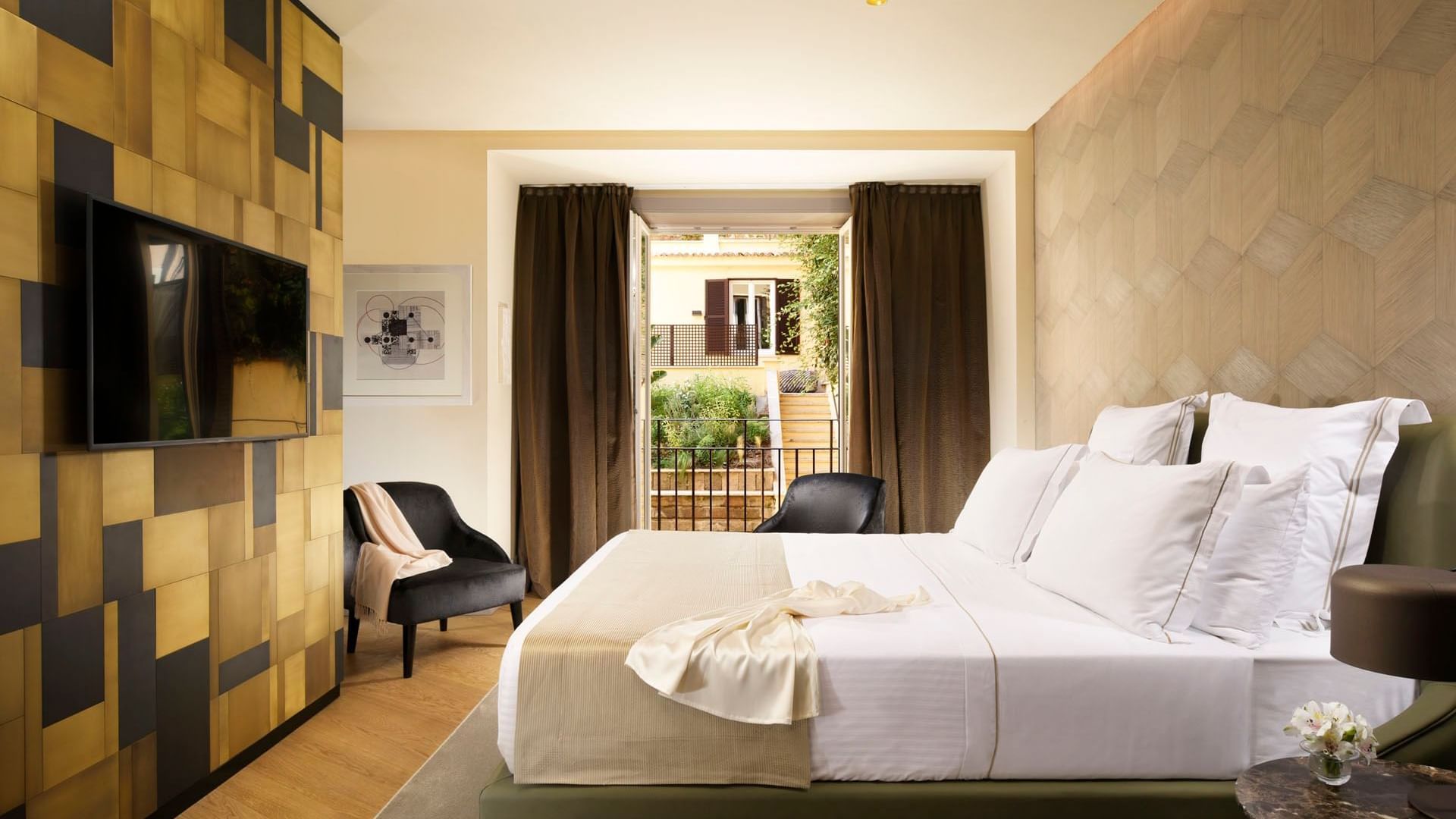 Arredate con pezzi d'antiquariato e opere d'arte unici, le nostre suite mostrano il meglio dello stile e del design italiano. Tessuti sontuosi e una palette calda di colori crema, oro e cioccolato creano un ambiente raffinato ed elegante, completo di comfort e servizi moderni. Dalla nostra esclusiva Garden Suite alle splendide suite classiche e deluxe, ogni categoria condivide il concetto comune di lusso. Con stanze che si affacciano sulla tranquilla Via Margutta o sul nostro rigoglioso giardino interno, pace e tranquillità sono garantite.